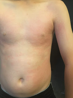 Sun. 27th--Calvin woke up to another bad rash. I gave him the option of staying home again, but he said no, that he would go. I was really proud of him for toughing through it. I know it was pretty miserable for him.