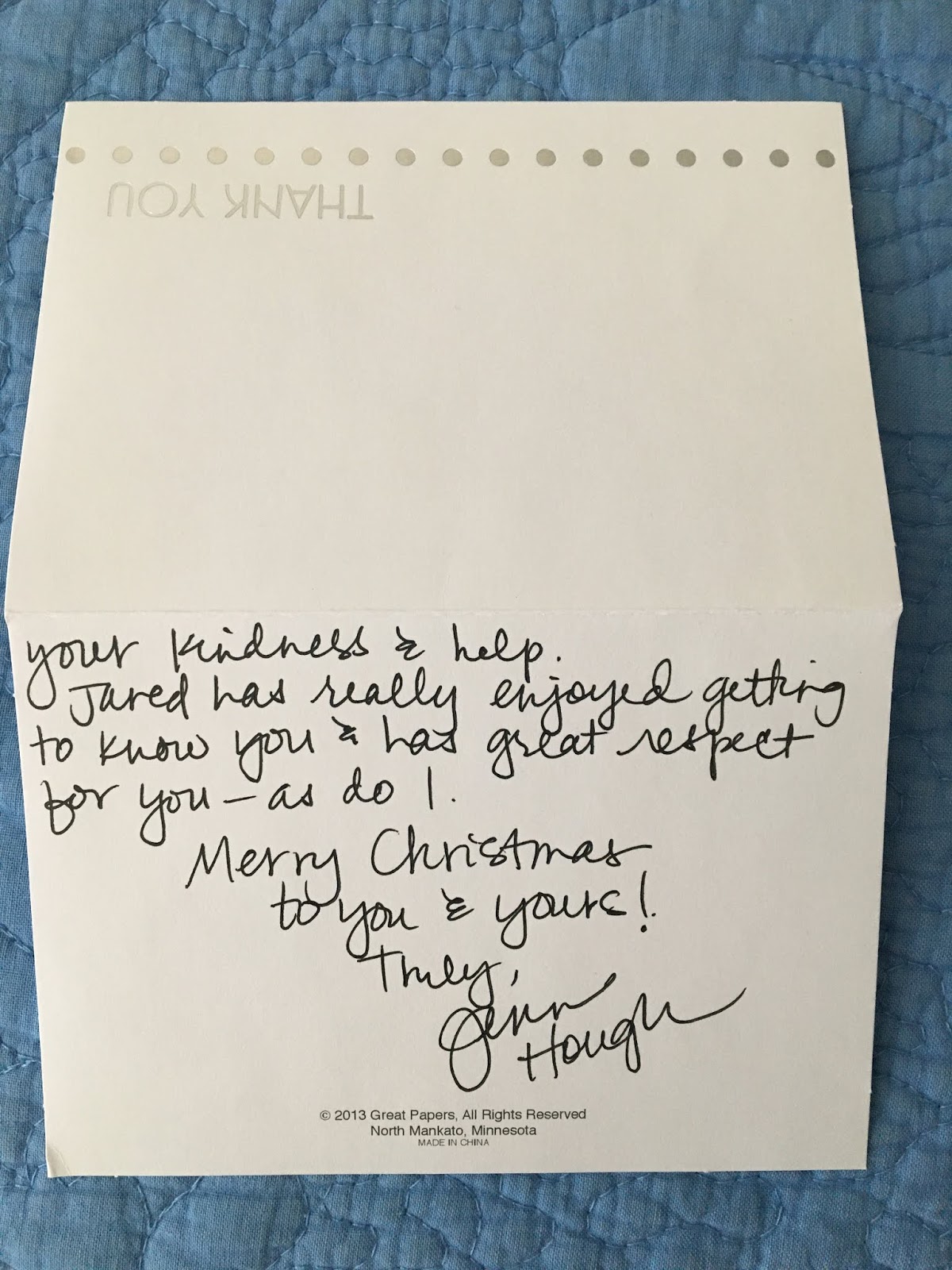 *Jared was looking at the guide on our TV later that night and the middle show "Holidays with the Houghs" jumped out at him. It's kind of weird seeing your uncommon last name on TV. :)